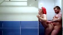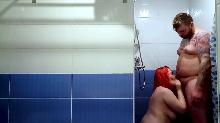 back  Redhead chubby fucking in the shower (video)